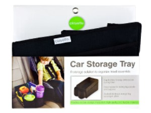 The car storage tray keeps travel items upright and within reach, not on the floor!