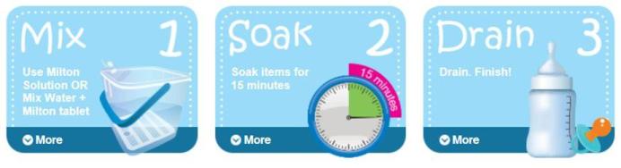 Source:miltonbaby.com.au Is it easy to use?Using Milton Sterilising Tablets means it takes just 15 minutes to sterilise feeding equipment.Milton solution can be kept for 24 hours so you can continue to put items in, and take them out when you are ready to use them throughout the day.Do I need to rinse everything after using Milton?No. The Milton solution leaves no unpleasant taste or odour, so there is no need to rinse after use - utensils can be used immediately.