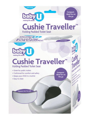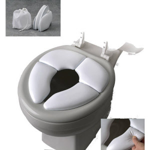 It is easy to clean, great for public toilets, cushioned for comfort and safety, fits all toilet seats and has underside brackets to help keep the seat secure. It includes a washable carry bag.